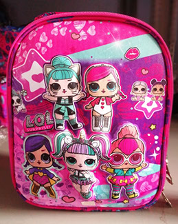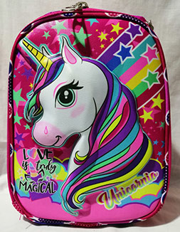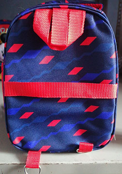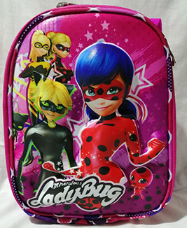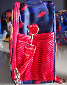 LONCHERAS 27cm x 21cm x 14 cm, térmicas, esporlon nro 8, tela sublimada, cierre rey nro 8 personajes en alto relieve (vulcanizados), con portabella, portatenedor, portaservilleta interior, vivo forrado, accesorios metálicos (media luna, mosquetones, regulador).