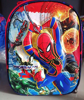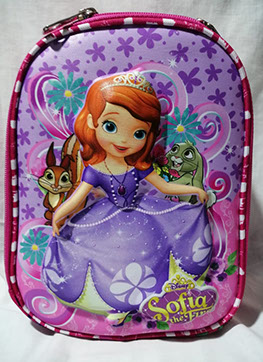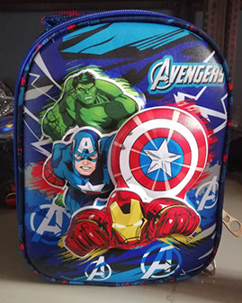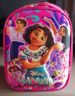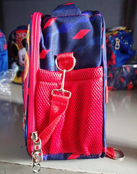 LONCHERAS 27cm x 21cm x 14 cm, térmicas, esporlon nro 8, tela sublimada, cierre rey nro 8 personajes en alto relieve (vulcanizados), con portabella, portatenedor, portaservilleta interior, vivo forrado, accesorios metálicos (media luna, mosquetones, regulador).